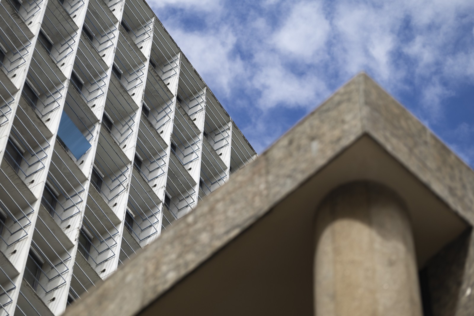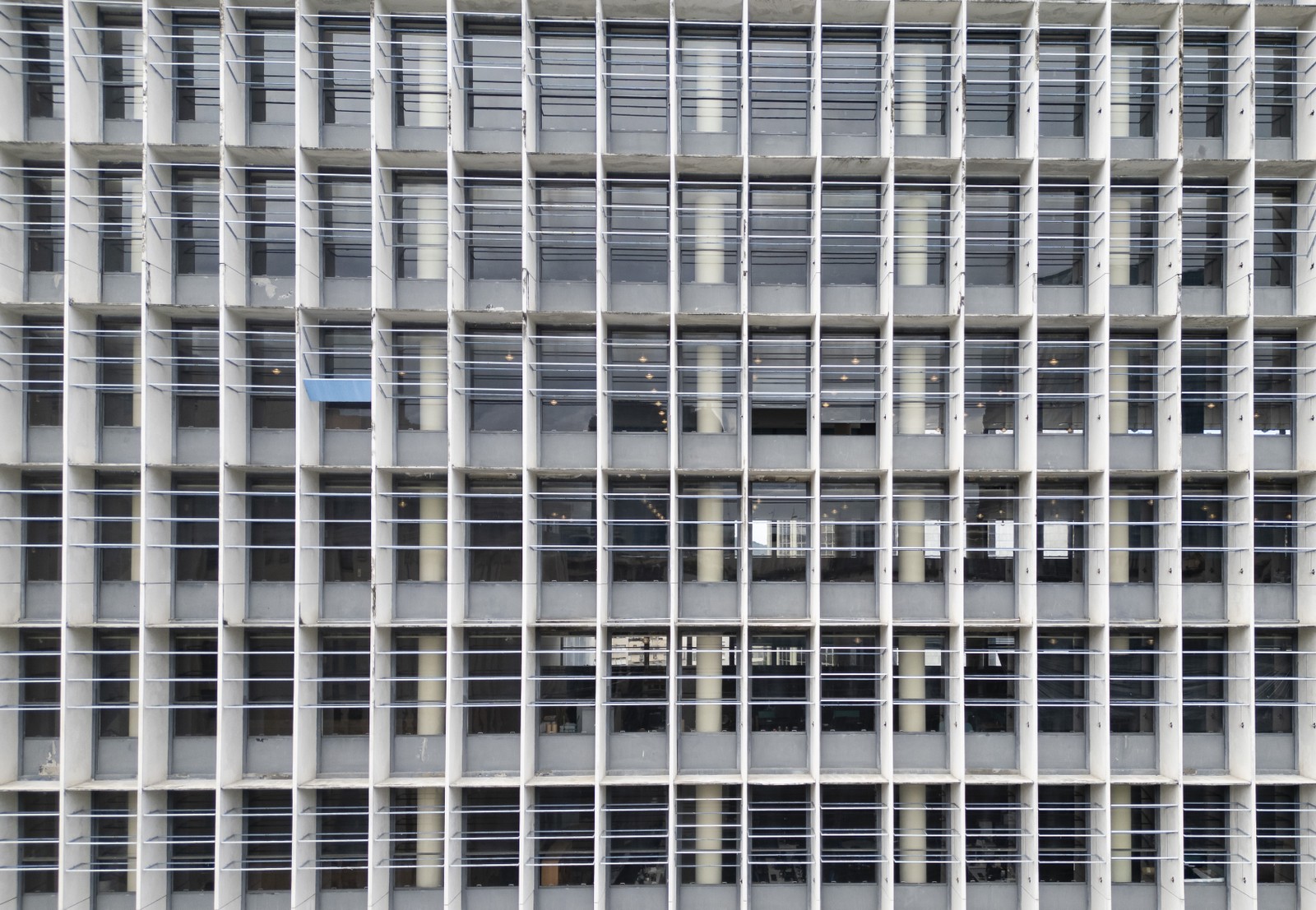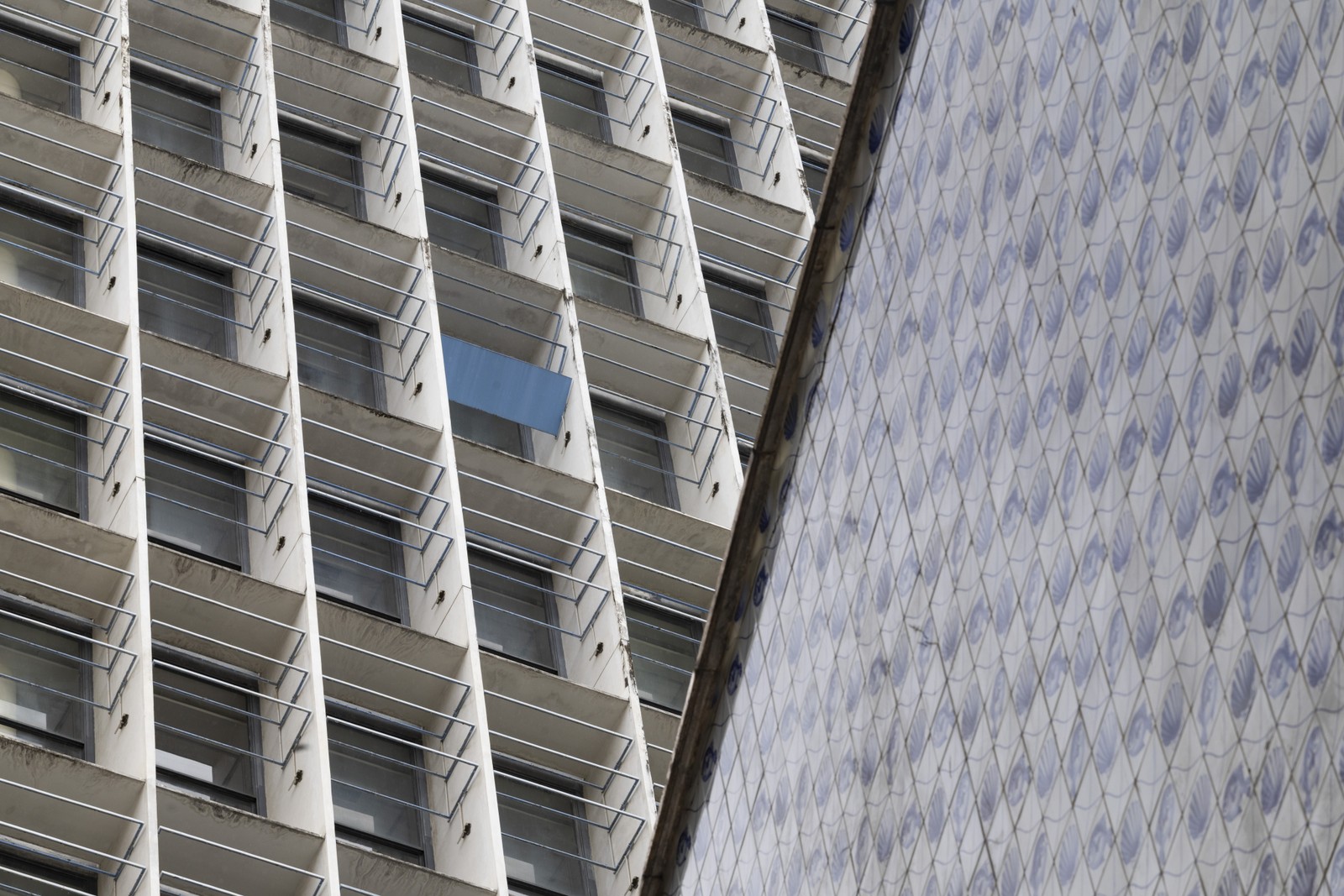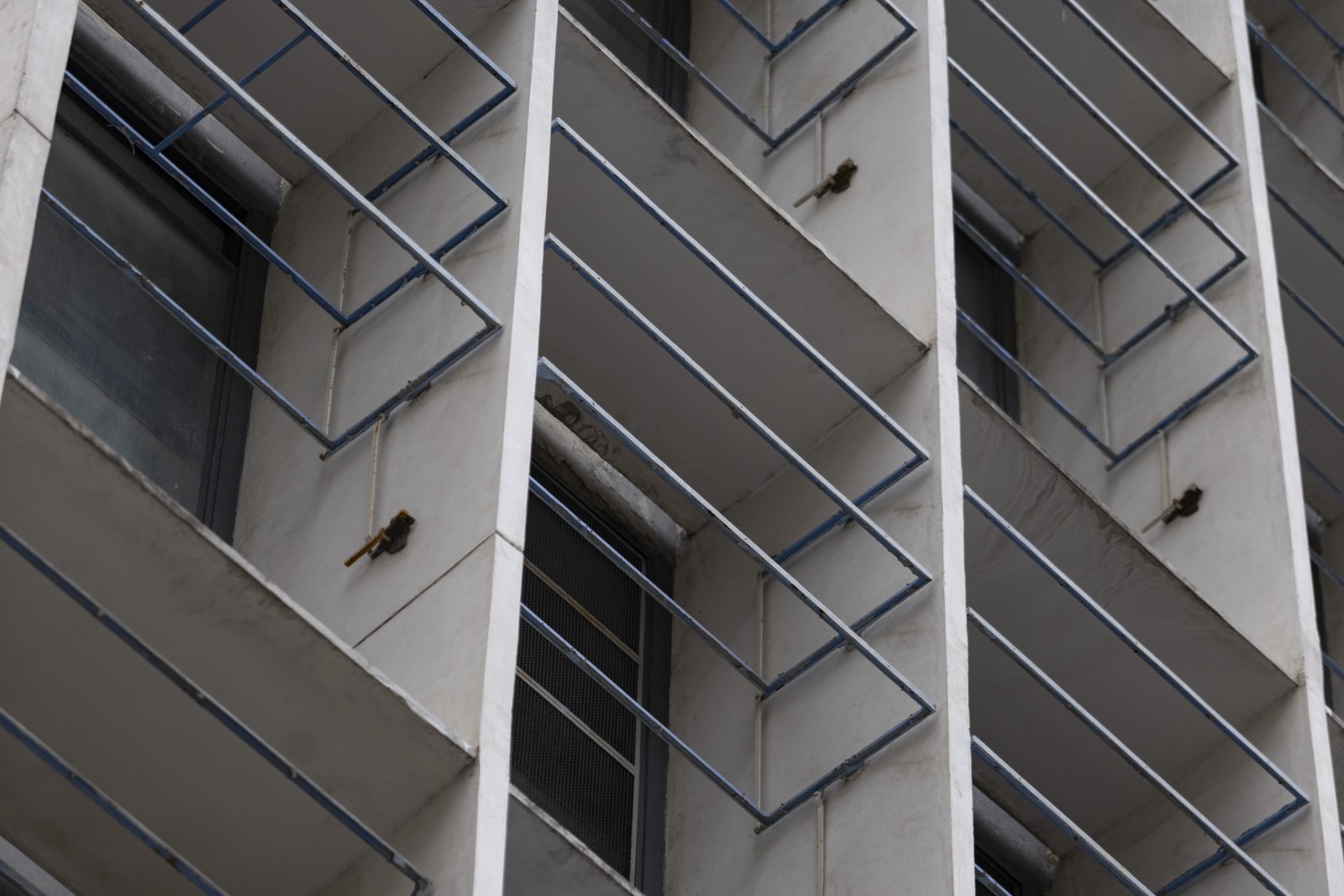 A fachada norte do Palácio Capanema está sem o sistema de brise-soleil desde 2022,apenas uma lâmina foi deixada como modelo — Foto: Márcia Foletto