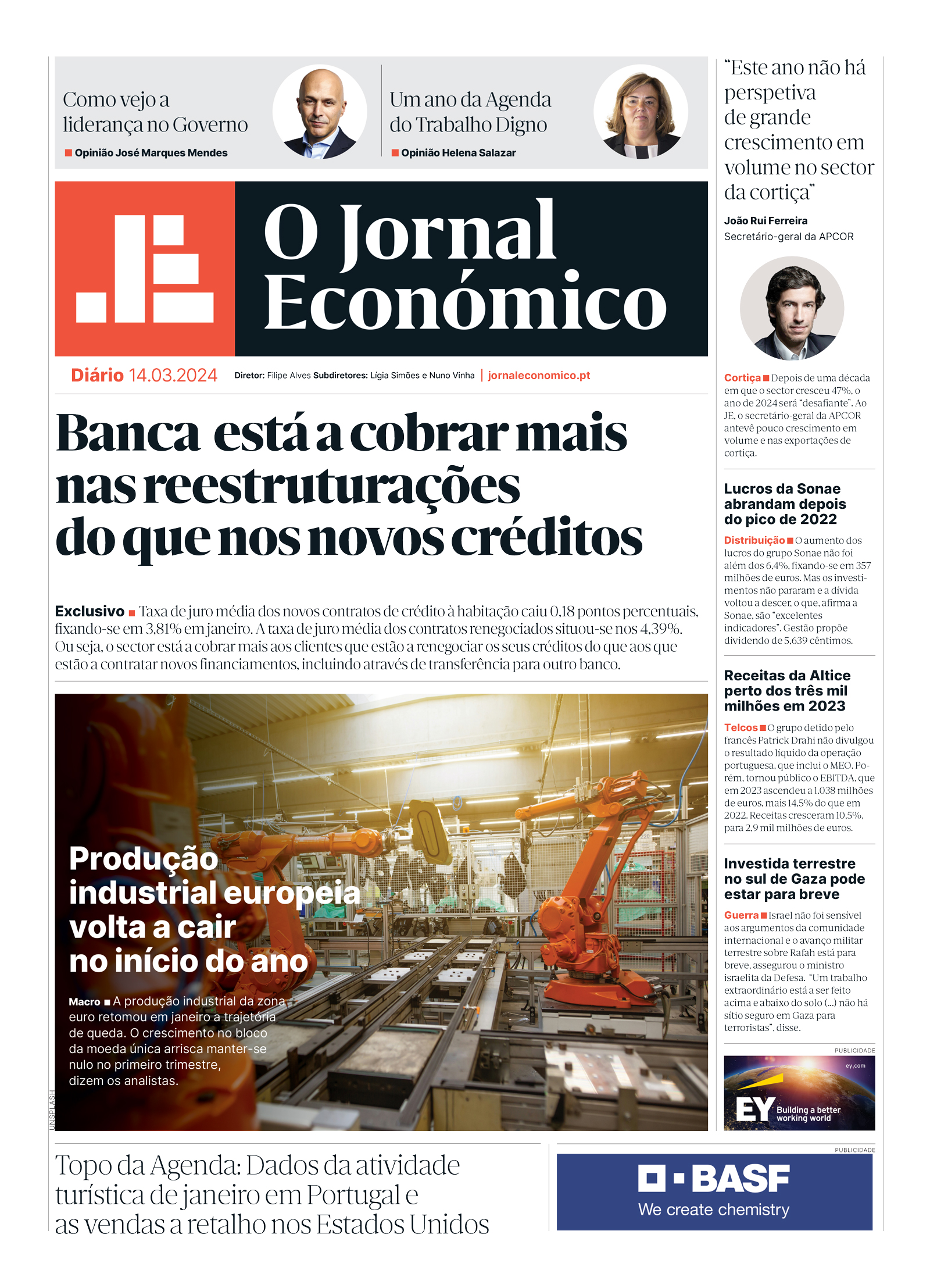 Veja aqui a primeira página do Jornal Económico de quinta-feira, 14 de março: