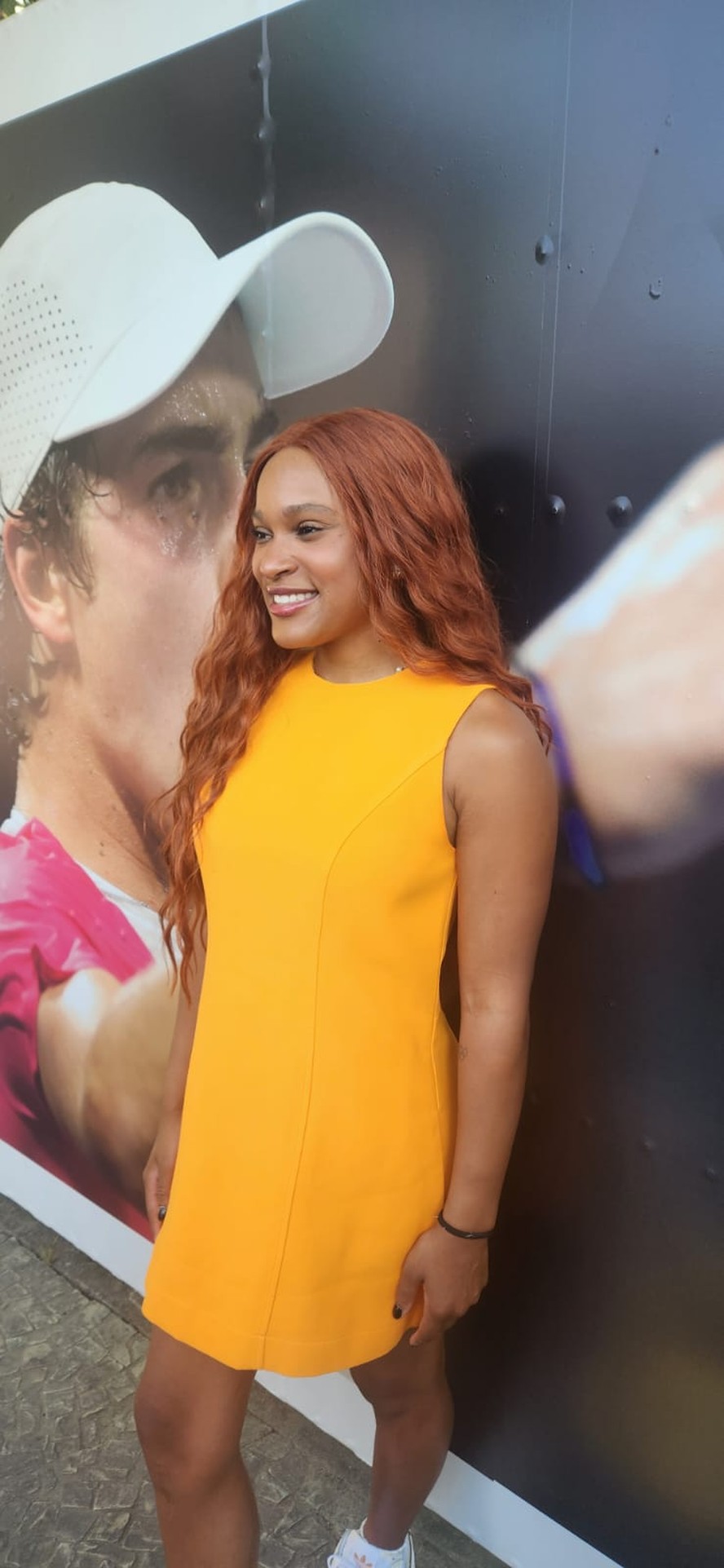 — Eu gosto muito de tênis,é uma honra para mim — disse Rebeca,que começou recentemente a ter aulas. — Fiz só quatro aulas até agora,mas pretendo começar com um professor para ver se consigo melhorar minhas habilidades.